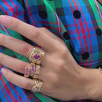 We make jewelry with integrity. The collection is crafted by a small team of skilled artisans who take pride in their work. In the studio, we recycle as much gold as possible. For non-recycled metal, our caster works exclusively with fair trade, fair mined gold. We work with extremely reputable diamond and gemstone dealers both locally and abroad. Our melee (accent diamonds) are conflict-free and consistently sourced from a single supplier. Diamonds with a GIA report are available over 0.25ct upon request. Please inquire for associated costs. Colored stones and the rough stone for our inlay are hand selected. All of our inlay is hand cut in Los Angeles.