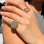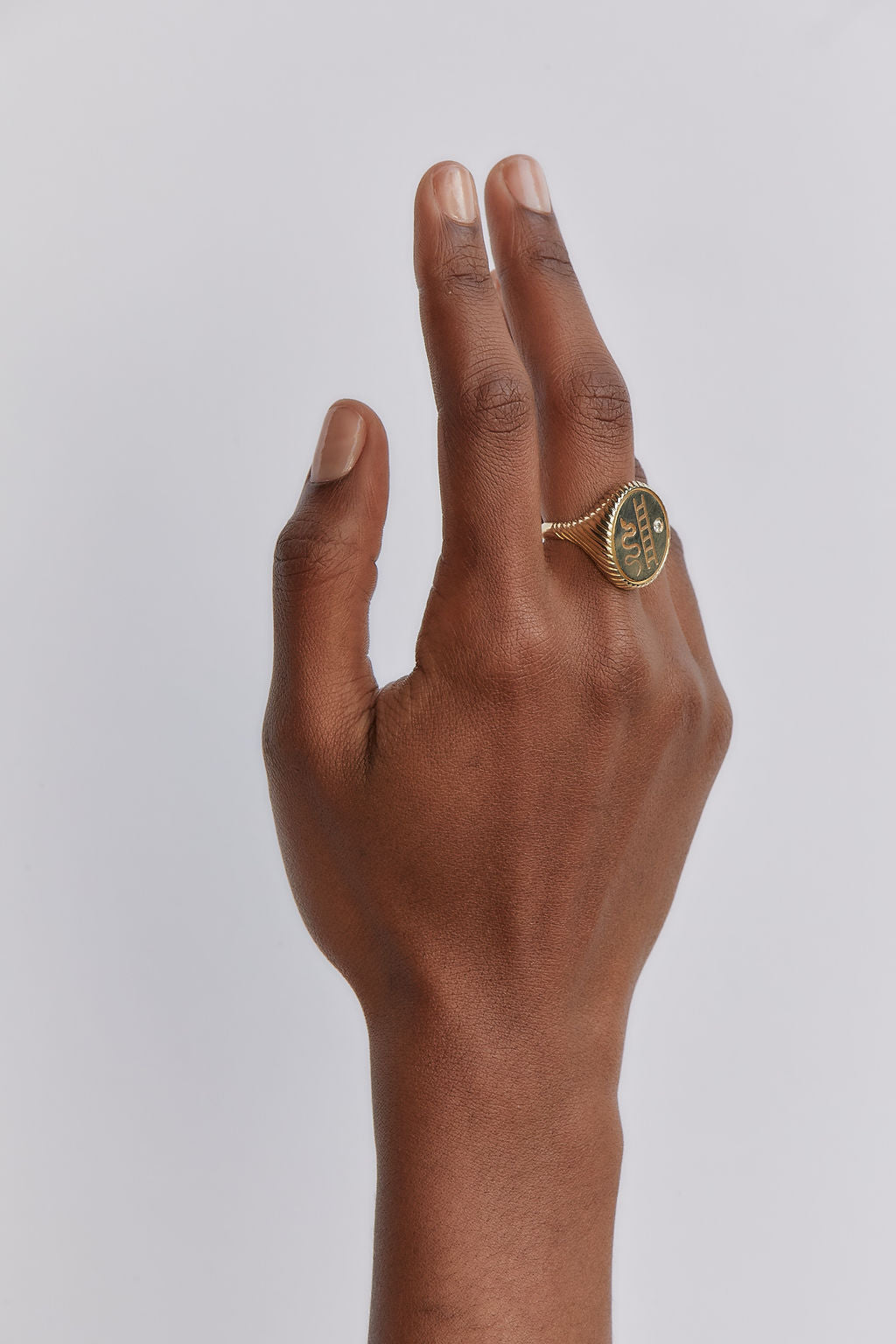 The snake and ladder represent vitality. Two steps forward, one step back. This motif is a play on the childhood game snakes and ladders. This ring serves as a reminder to be resilient, and always look forward.